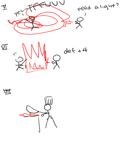 with KASAI the fucking old man/unwilling psychiatrist for your leader 8| by now, he will have mastered the art of burning things vol 1 and 2.